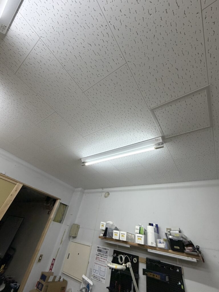 完成後は以前の天井を忘れてしまうほどの、明るさと清潔感。天井高も十分なので適度な解放感もあります。