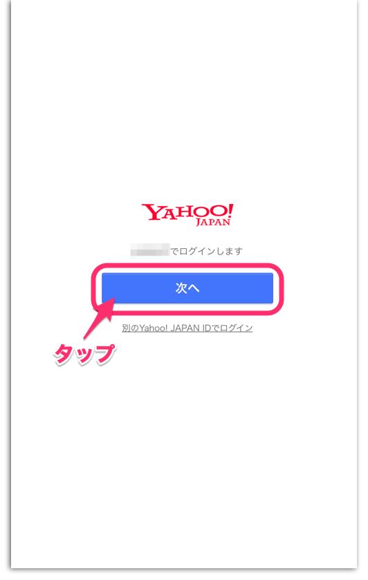 Yahoo!IDでログインの画面が出てきたら、IDを確認して[次へ]をタップします。