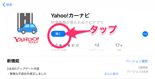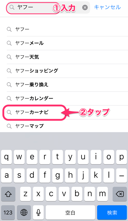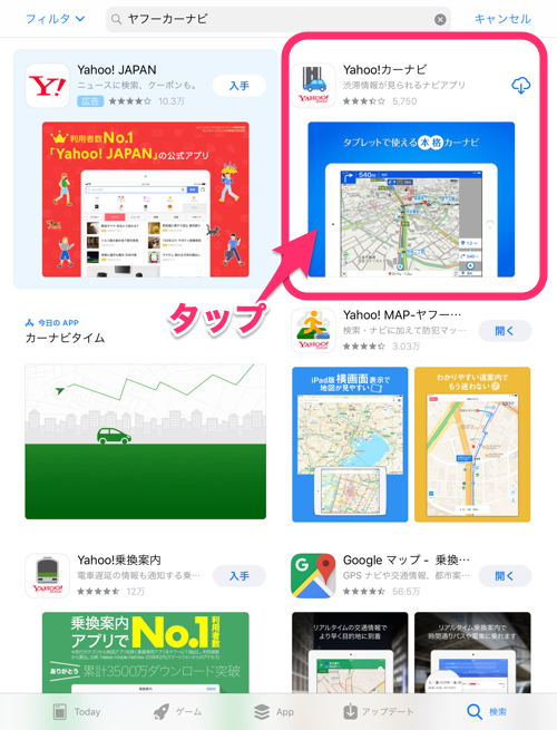 一覧に表示された[ヤフーカーナビ]をタップします。