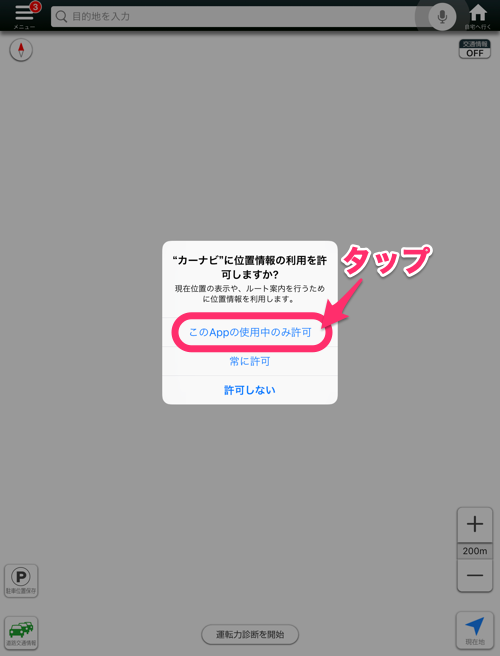 「このAppの使用中のみ許可」または「常に許可」のどちらかをタップします。