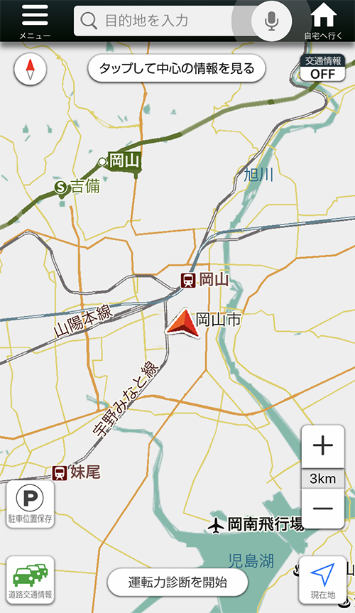 *画面右上にある[交通情報]をタップしてONにすると表示されます