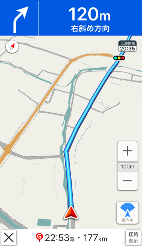 その他交差点の車線表示や高速道路での分岐の表示もわかりやすく、使い勝手はとても良いです。目的地までの到着時間も正確で、Yahoo!の他のアプリと連携して、詳細な混雑状況や天気情報も随時わかります。