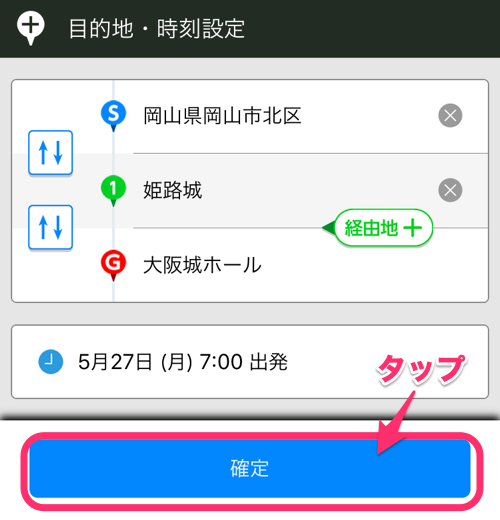 *経由地は最大5地点登録できます(バージョン更新等で変更されます、最新情報を確認してください)