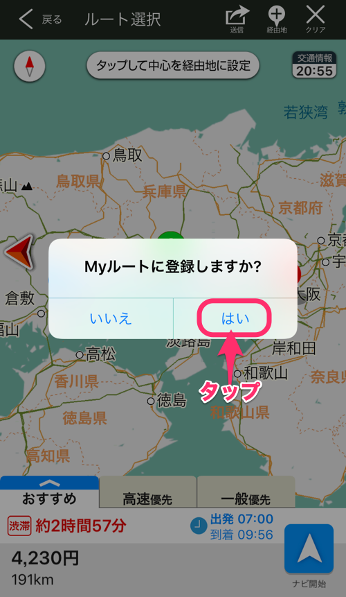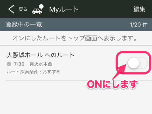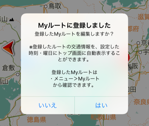 「Myルートに登録しますか?」と確認画面が表示されます、