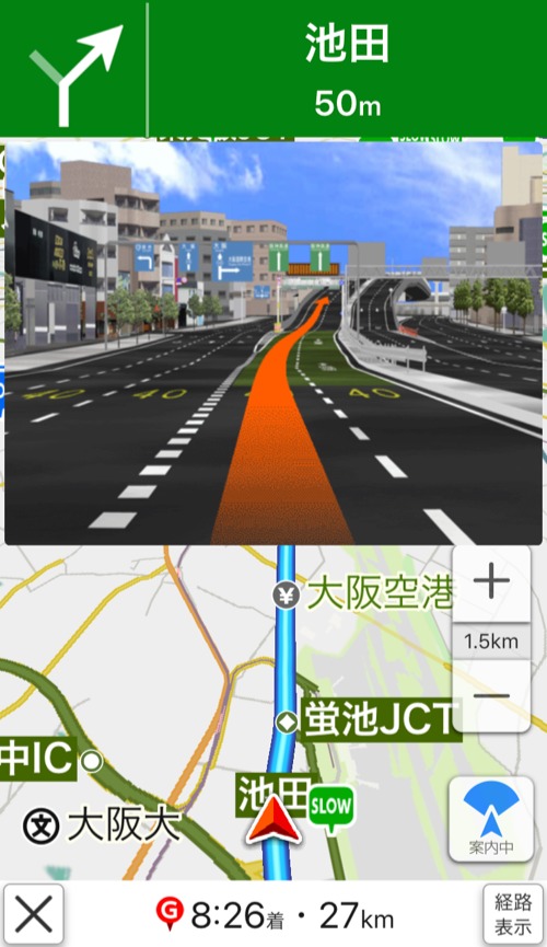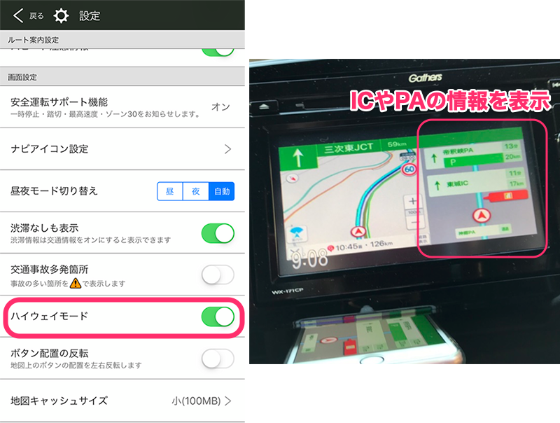 夜間モード,高速道路モードもあり、カーナビとしての機能は充実しています。