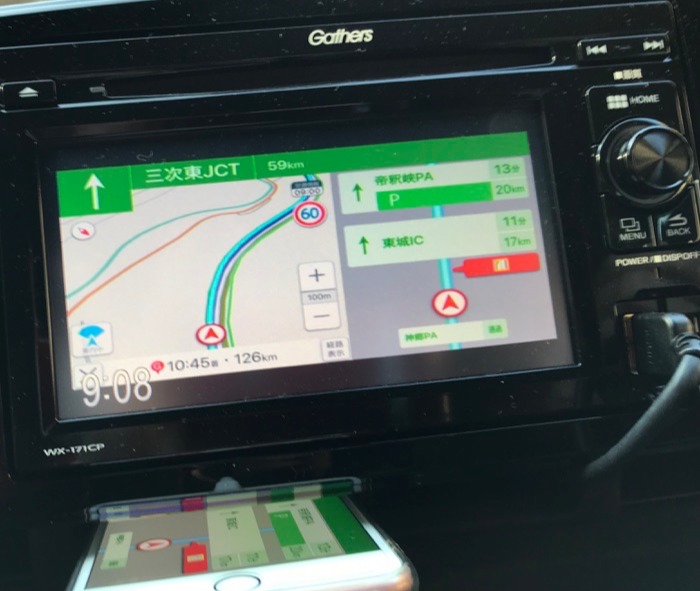 ディーラー純正のカーナビと比べると、車のディスプレイではタッチセンサーで動かなかったり、自動で電源が入らなかったりと全く同様な操作はできないかもしれませんが、スマフォの音楽プレヤーや電話機能とも連動して自動で音声を小さくしたり、ナビ中でも電話が利用できたり、ハンズフリー(Bluetooth)機能も使えます。またナビ案内中でなくても、交差点等の一時停止地点では音声でお知らせしてくれたりします。